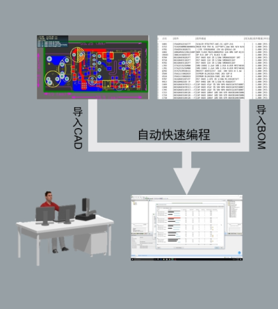 ASM贴片机,西门子贴片机 SIPLACE 自动编程软件,支持一键导入PCB文件和BOM文件,根据预设规则,自动创建程序,自动创建新的物料外形,自动进行程序优化。并可自动读取工程变更文件,快速自动完成工程变更和校验。极大的加速新程序的制作时间,减少人为制作和修改程序容易出错的风险。